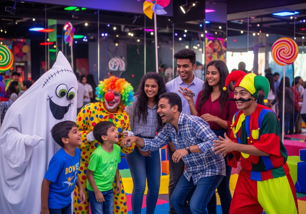 Meet cheerful performers and playful figures who bring humor to every corner.