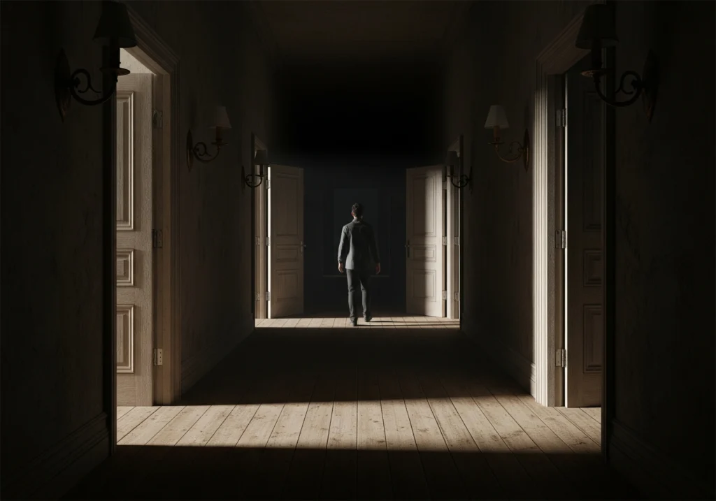 The moment the door shuts behind you, the fear builds. Every chamber pulls you deeper until the final scene tests your nerves one last time.