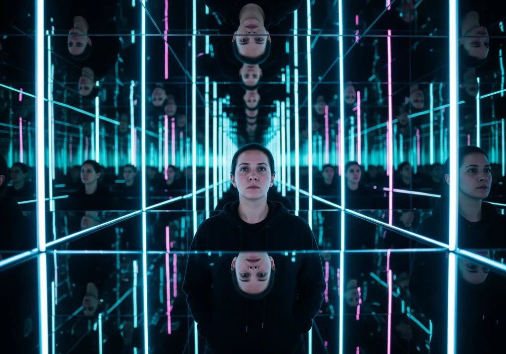 Step into a shifting labyrinth where reflections deceive and